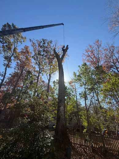 When a tree is deemed unsafe to climb and utilizing an aerial lift isn't practical, we will recommend Crane Assisted Tree Removal. This is one of the safest and most efficient ways to remove a hazardous tree from your property, while minimizing the risk of damage to your home, property and surrounding structures. We are partnered with some of the best crane services in the Piedmont-Triad and can provide the correct size crane for any size job.